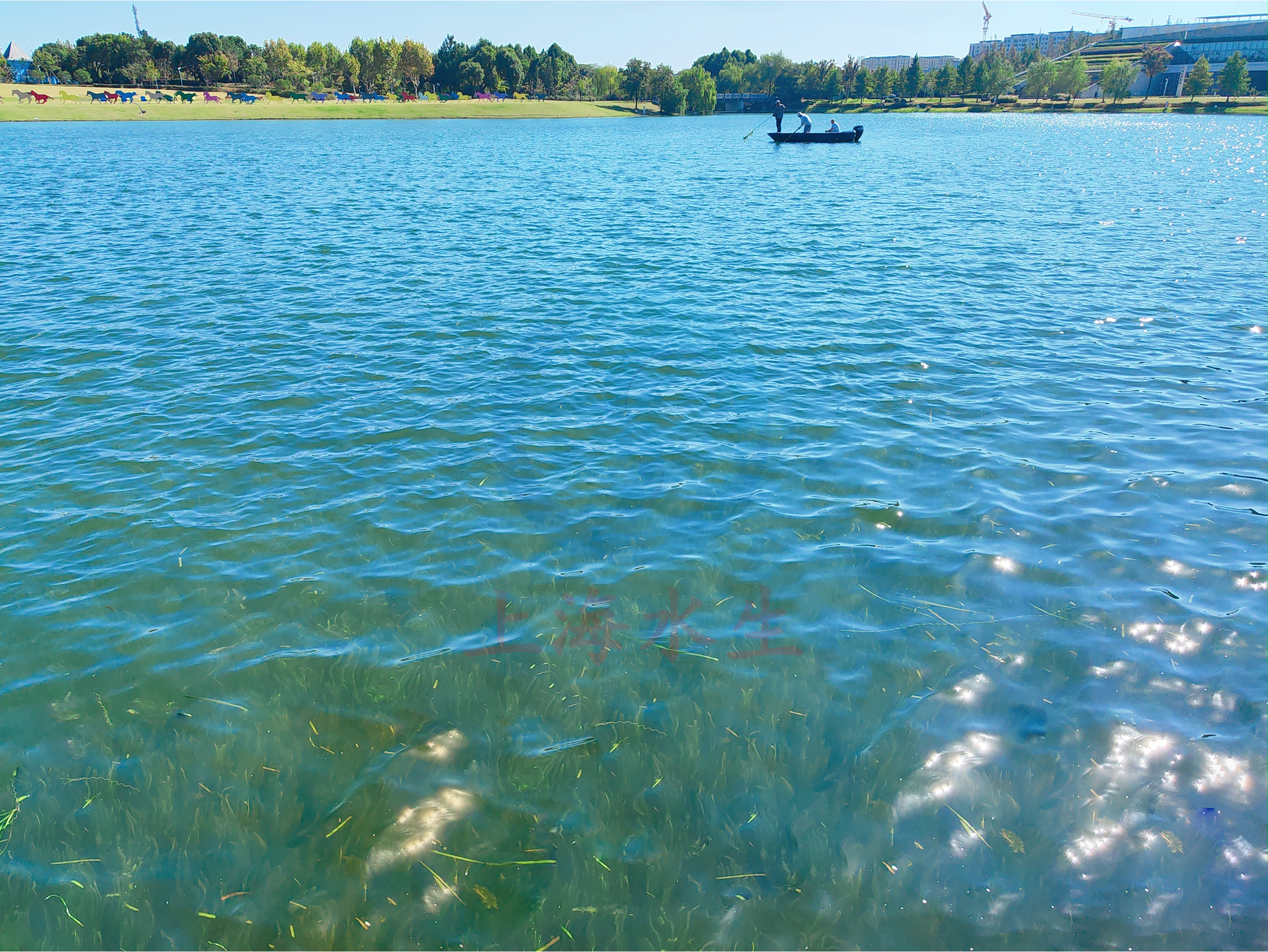治理效果 工程由2023年4月24日开始进场实施。截止到2023年8月8日,公园主要水质由原来的Ⅳ-Ⅴ类变为Ⅲ类,透明度由0.2—0.6m变为1.5米,并持续保持良好。